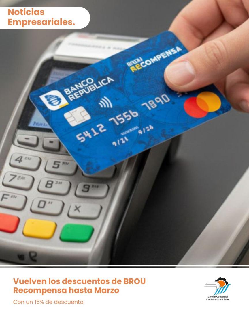 Beneficios con la tarjeta MasterCard BROU Recompensa, dirigida a comercios del litoral del país con un 15% de descuento.